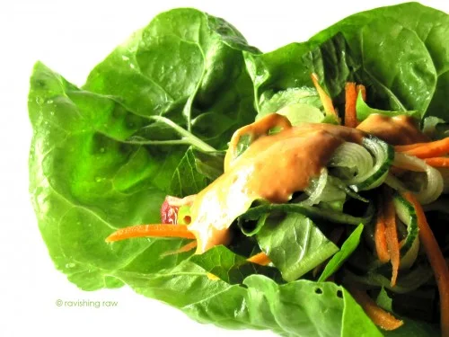 - Green wraps filled with vegetables mixed with a little bit of dressing