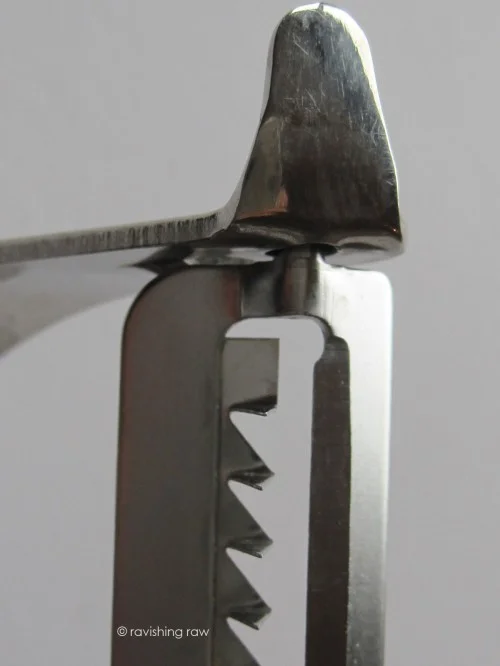 Another favorite tool of mine on travels is a potato or a julienne peeler. It is so small and light that you can even take it in your purse to improvise a meal after visiting a local farmers market. In only one minute you can slice a zucchini into a lovely pasta. I love this little tool and you will appreciate its easy use and cleaning. Again, this tool has a blade and has to be taken in your suitcase during flying.